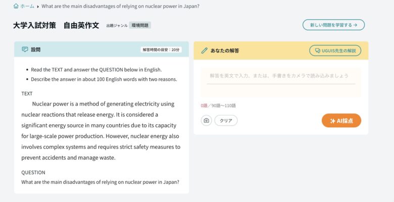 今回、UGUIS.AIを実際に使って、大学受験のライティング対策を試してみました。