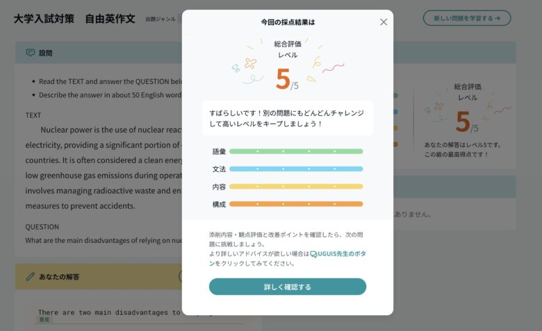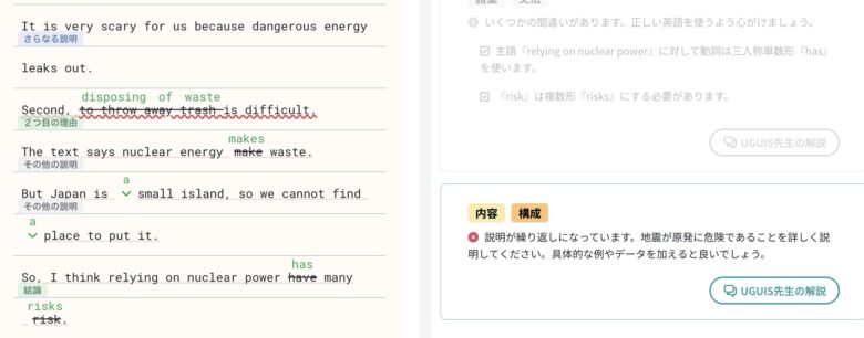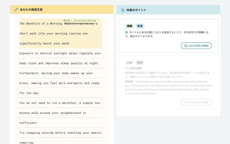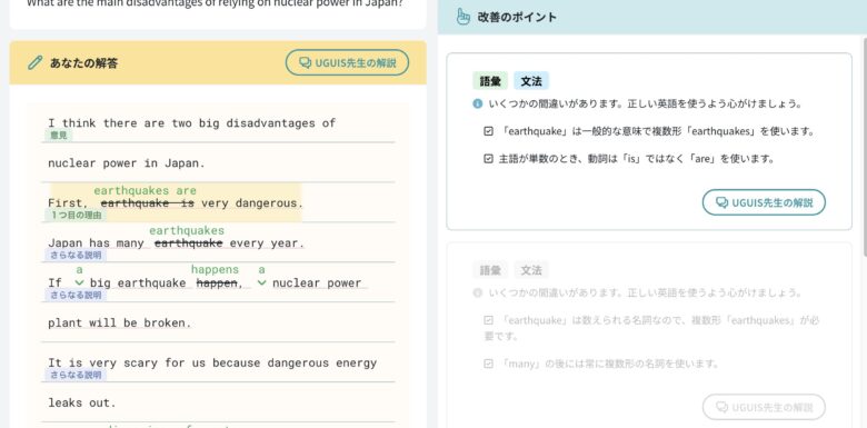 UGUIS.AIは、英作文学習における「添削の壁」を解決する有力なツールです。