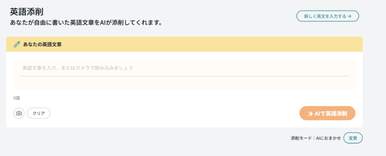 | 対応コース・試験 | ・英検®対策:1級 / 準1級 / 2級 / 準2級プラス / 準2級 / 3級 ・大学入試:自由英作文(語数・テーマ設定可) ・フリー入力:日記、エッセイなど自由な文章 |