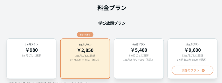 | プラン | 料金(税込) | 1ヶ月あたりの金額 |